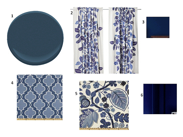 4. This quatrefoil fabric is PKaufmann's Luca in the Sapphire colorway. I have a yard of this in the Teal colorway that I was going to recover my office chairs in, but since we are moving and my office will now be in the attic, I am holding off for a while. The scale of the fabric is pretty large, though, and the windows are small.